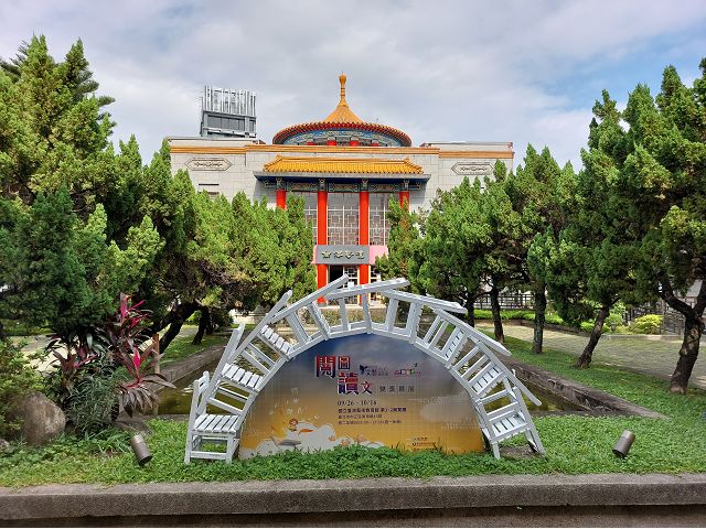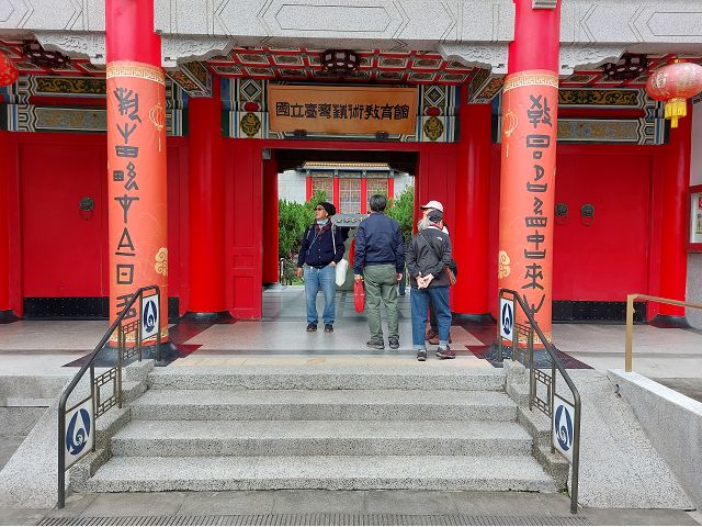 走出植物園,沒忘了步入評定為歷史建物的國立臺灣藝術教育館,古色古香,景物依然,大門紅柱上大大的甲骨文對聯,好讓人費心思量推敲,看官,你猜對了嗎?別急,柱後有答案揭曉。 (請參閱:「藝術教育館.科學教育館~台北植物園系列https://blog.udn.com/jkt19813/104442056」)
