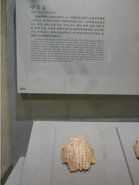 *龜甲獸骨上裂痕歷歷,甲骨文刻字則模糊難辨;有關甲骨文的展示、說明,不如殷墟博物館。(請參閱:「20120909~19縱橫河南11天(六)~列世界文化遺產的殷墟是商朝後期統治中心.羑里城是文王拘而演周易的歷史發生地.在湯陰岳飛廟引吭高歌滿江紅https://blog.udn.com/jkt19813/184161360」)