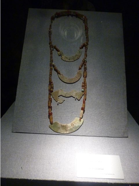 *西周七璜聯珠組玉佩是以玉佩、琉璃珠和瑪瑙串結的項鍊飾品,雙排兩行、左右對稱,長約87厘米,足以顯示那時代的審美眼光。