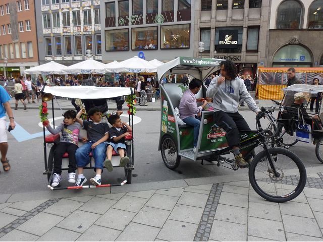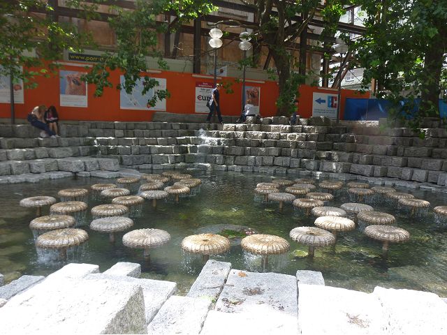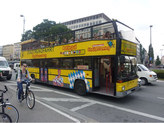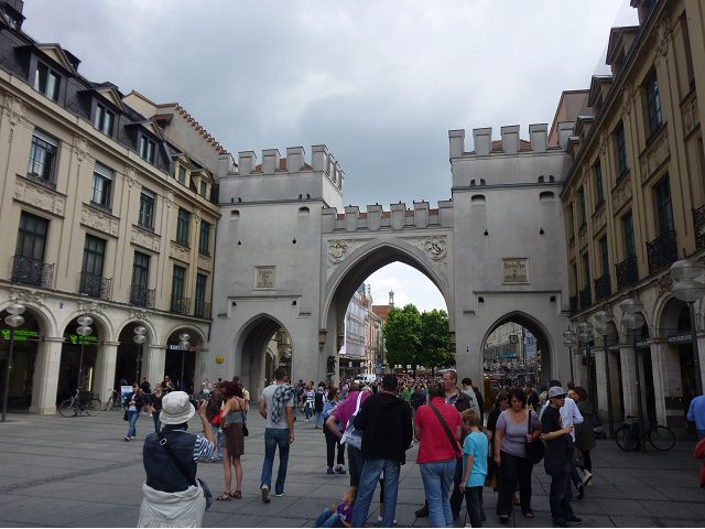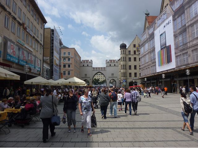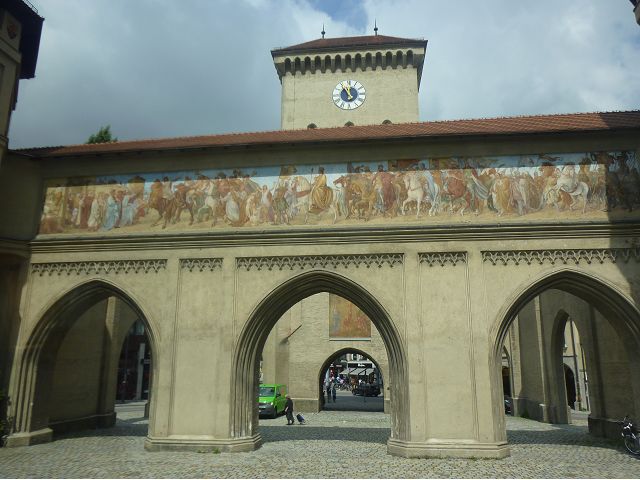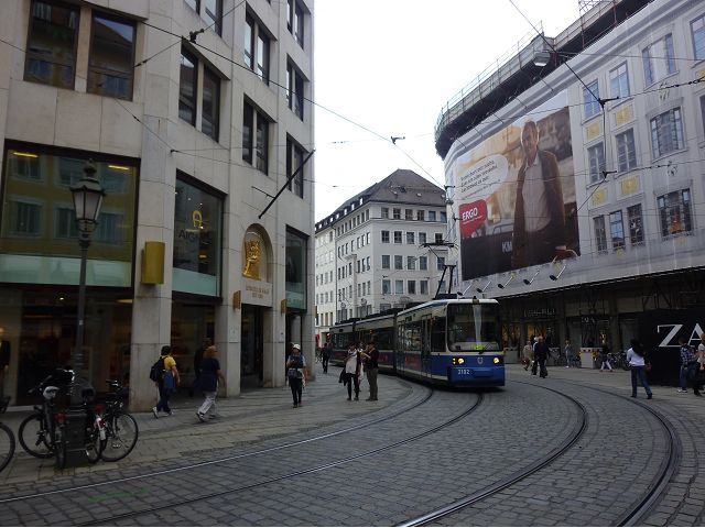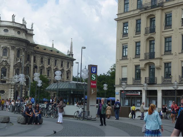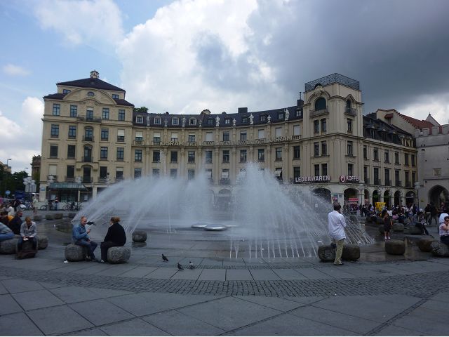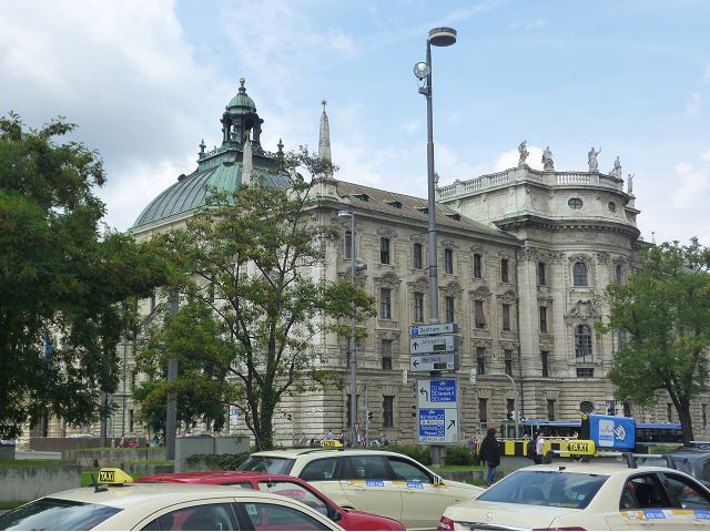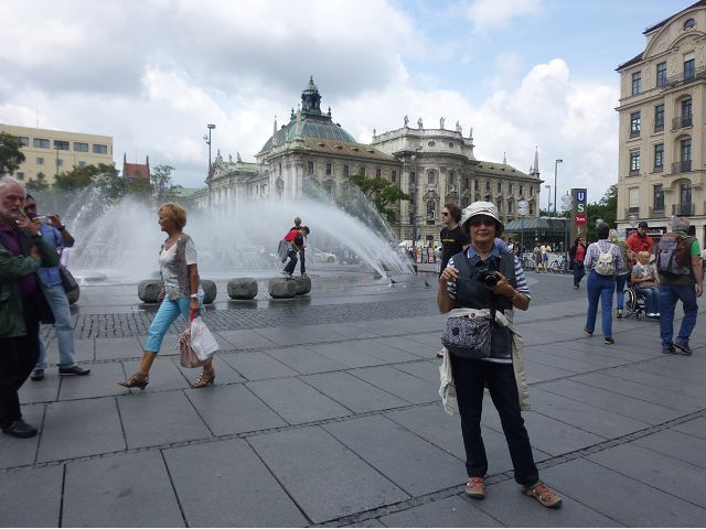 午後車遊慕尼黑,路過奧運會場,想起慕尼黑舉辦夏季奧運會時(1972),發生巴勒斯坦恐怖分子劫持並殺害以色列運動員事件,喧騰一時,匆匆已歷半世紀,迄今以、巴仇恨依然難解。到老城區東側城門遺跡之一的伊薩爾門(Isartor),前方有噴泉廣場,男男女女圍坐噴泉邊,一派悠閒,另一側連接舊城區鬧街,形成鮮明對比。我們由此地開始,徒步漫遊慕尼最精華的步行購物區,不論是親民的平價服飾、或是精緻的精品品牌應有盡有,肯定能滿足旅客購物需求。沿途遊人如織,街上許多建築看起來像是18~19世紀德國古建築式樣,其實二次大戰末期,德國許多大城市都遭受過大轟炸破壞,包括慕尼黑,目前所見景觀興許大多數是戰後重建的,不過他們修舊如舊,勉力恢復舊觀,依然引人讚嘆不已。城市觀光,感覺街道裡教堂、裝置藝術品和噴泉特別多,街上建築物的雕飾豐美,看到廣場邊新巴洛克風格的司法宮(Justizpalast)、雙層觀光巴士、德國城市U -Bahn和S–Bahn地鐵站標誌、市內有軌電車、戶外坐滿食客的豬腳香腸啤酒餐廳等,對上眼了,忍不住就按下快門(那時候仍使用底片相機)。此外,印象比較深刻的,略述於後: