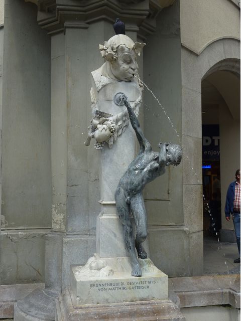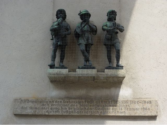 *繁忙購物區裡蠻顯眼的 Hirmer 服裝店,是歐洲最大的男裝店之一,店鋪一樓的拱門、各樓層窗台的紅花,以及印上店名的紅色垂直布簾,還有店外廣場上的一尊野豬雕像等,都引人注目,路過遊客大抵不會忽略這家店。據說,觸摸雕像會帶來好運,怪不得某些部位閃閃發光。