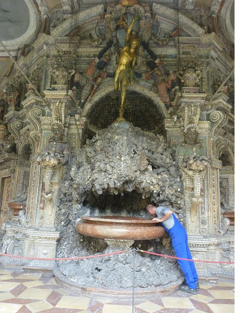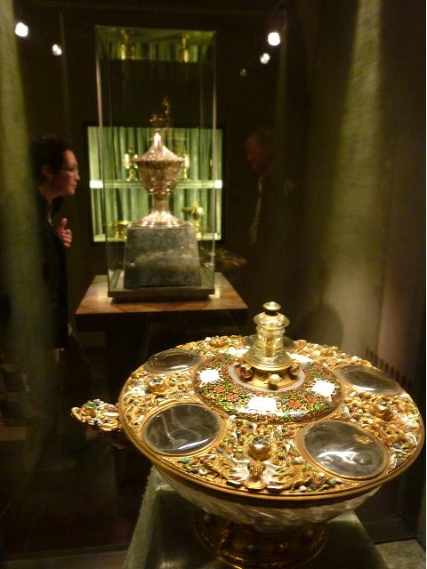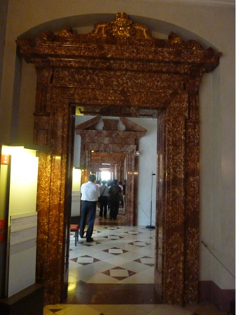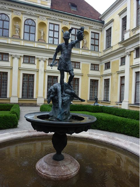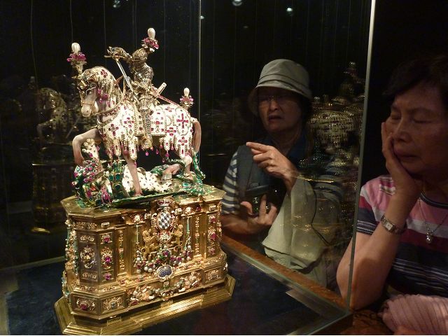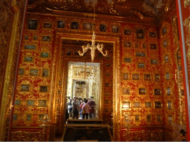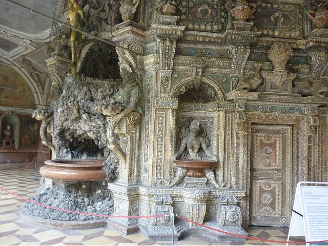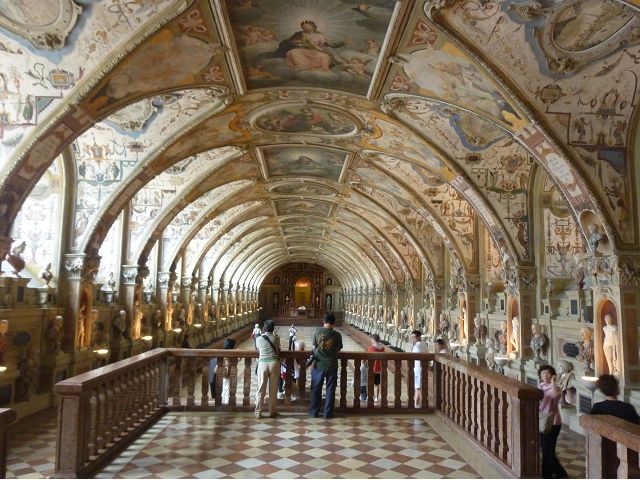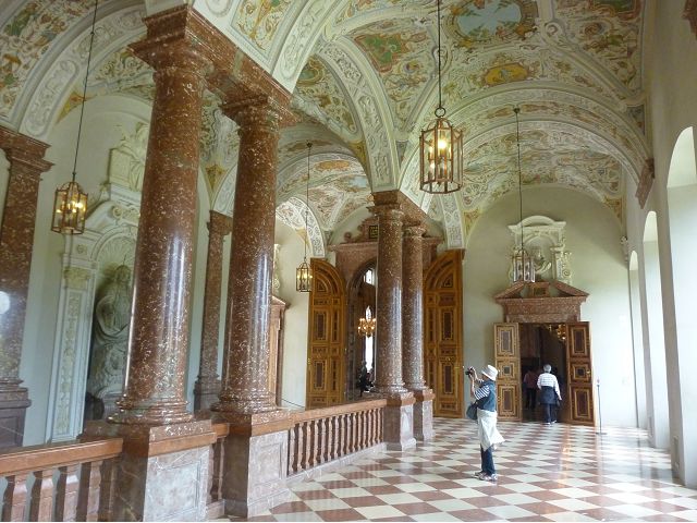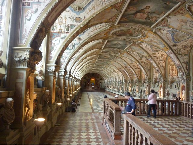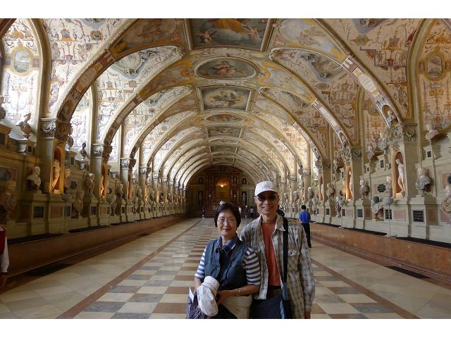 *慕尼黑王宮(Residenz Munchen)始建於1385年,因不斷擴建改建而成低調普通的巨大建築群,自古以來卻一直是歷代巴伐利亞君王、公爵主要居所,目前轉型為博物館和珍寶館,可欣賞巴伐利亞王室舊時榮光,最引人的是長約70公尺拱頂長廊的古董大廳(The Hall of Antiquities)可當作慶祝場地與宴會廳使用,廳堂兩側滿滿陳列著巴伐利亞歷代收藏的皇家藝術品、雕塑和精緻的壁畫,號稱為全歐洲最豪華的室內設計;另有貝殼庭園(Shell Grotto),建造概念來自希臘神話傳說,雕塑裝飾擁擠密集,缺乏美感;王宮珍藏種類繁多,豐富精緻,美不勝收,看得是眼花撩亂,抓不住重點。
