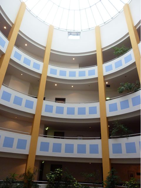 遊覽新天鵝堡之後,夜宿福森(Füssen)火車站旁的Luitpoldpark飯店,內部採用圓形天井和多層樓層環繞的結構設計,中庭明亮,蠻獨特。德國南部有所謂"羅曼蒂克大道(Romantische Straße)",是指從符茲堡(Würzburg)起,直至阿爾卑斯山腳下福森(Füssen)的著名觀光路線,全長約350公里,沿途串連了26個充滿中世紀風情的古堡、教堂和田園景色城鎮,如羅騰堡(Rothenburg ob der Tauber)和新天鵝堡(Schloss Neuschwanstein),以體驗德國南部古典浪漫的旅遊為號召。而福森火車站距離新天鵝堡是最近的,僅6公里,所以許多旅客的行程會先安排在此優美小鎮住宿一晚。