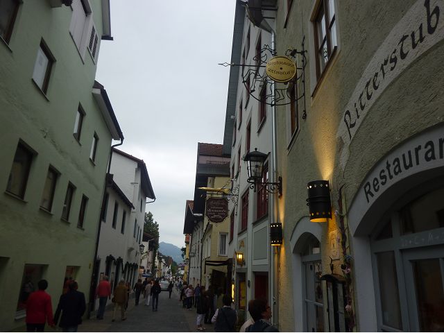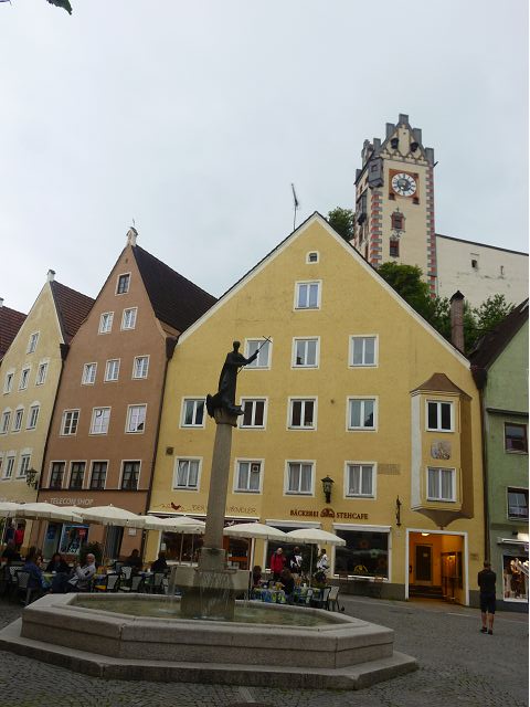 第五天(08/01)行程,走訪古羅馬時期以來的歷史古城福森、腓特烈港波登湖畔的齊柏林飛艇博物館和黑森林地區蒂蒂湖畔的咕咕鐘製作場。既夜宿福森,次日晨便走訪這座阿爾卑斯山脈腳下、古羅馬時期就已經存在的歷史古城,海拔808公尺,人口不多,舊城區在火車站附近,最熱鬧的是Reichenstraße大街,仍保存著中世紀時期五顏六色的房屋,有很多餐廳、酒店、旅館,主要是接待前往新天鵝堡的遊客。信步瀏覽,發現噴泉、廣場、裝置藝術頗多,店招美麗,很有特色,琳瑯滿目,引人注目,順手記錄較有印象者如下: