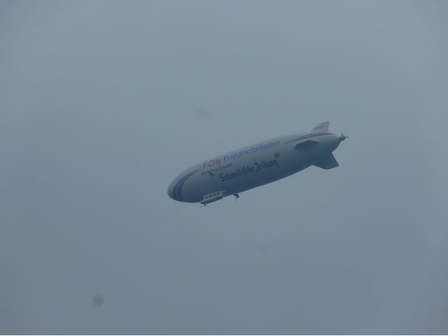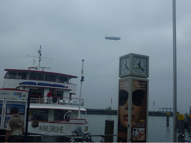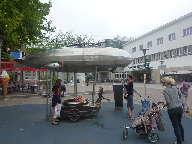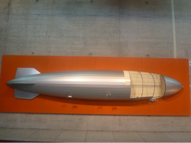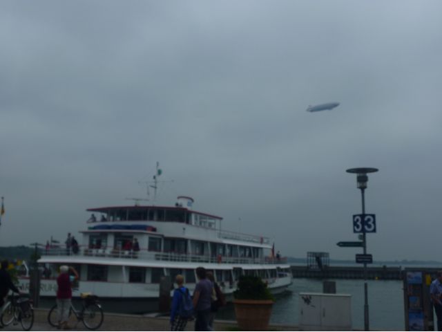 〈按:德國腓特烈港是飛行船(der Zeppelin或das Luftschiff,中文翻作齊柏林飛船或飛艇)的誕生地,世界上第一架飛船工廠就設在腓特烈港。飛船曾經飛翔天空,像今日的海上郵輪般,有乘客艙、餐廳、臥房、交誼廳,帶遊客到各地方旅行,可說是1900年代有錢人、上流人士的時髦玩意。德國人設計的飛船原本是使用氦氣(Helium)作為燃料,因為非常輕,不會燃燒,很安全,但當年只能從美國進口,十分昂貴,後來美國更禁止氦氣出口,德國人便改用氫氣(Hydrogen),也因為便宜,開始時都沒有出事。直到1937年,興登堡飛船(LZ 129 Hindenburg)從德國法蘭克福(Frankfurt)飛往美國紐澤西州(New Jersey),在準備降落時因易燃的氫氣著火焚燬,搭載的96位乘客和機組人員中,有36人不幸罹難,是當時最慘重的航空事故之一。因此之故,飛船肇因安全性和經濟效益問題,於第一次世界大戰後被飛機取代。〉