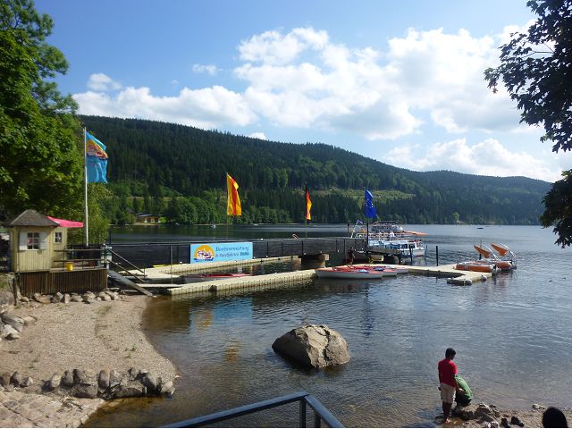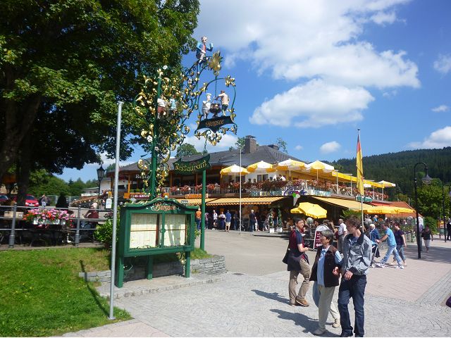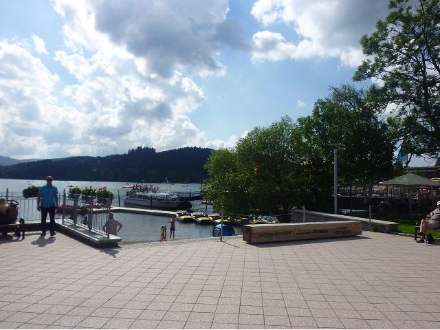 隨後轉往同屬巴登-符騰堡邦黑森林南部的蒂蒂湖(Titisee),是此地區著名的度假勝地。蒂蒂湖是黑森林地區最大、最具代表性的湖泊之一,面積約1.3平方公里,平均深度約20公尺,湖泊四周被森林環繞,黑森林之稱,良有以也;自然風光美不勝收,湖區紀念品店、咖啡館和餐廳多,氣氛悠閒,觀光應景而生,是該地區最受歡迎也最具代表性的景點之一。旅行團來此,主要卻是參觀鄰近蒂蒂湖-新城(Titisee-Neustadt)一間販售咕咕鐘(cuckoo clocks)聞名的商店- "Drubba 1956",一眼就看到白色建築外牆繪有巨大時鐘和樹木圖案的Drubba 1956,工場規模不大,已約定好由專人導覽參觀咕咕鐘製作過程。對風光迷人的蒂蒂湖,只匆匆一瞥,隨即馳往中世紀古老的黑森林大學城-佛萊堡(Freiburg im Breisgau),夜宿Stadthotel。