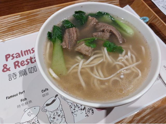 到紀念堂對面、國家圖書館地下層詩篇咖啡餐廳(Psalms Cafe & Restaurant)吃牛肉麵,倒是臨時起意,緣午餐時分,突然想起在台北牛肉麵節連年獲獎的這家餐廳,就在馬路對面,何不移駕去大快朵頤,於是,轉進國家圖書館B1,立即看見餐廳門口高掛紅布條閃耀著這連年獲獎的榮耀;詩篇餐廳空間寬敞,正中央還有可愛的屋中屋設計,並結合藝文展覽,藝術與信仰相融,氣氛輕鬆;番茄與清燉牛肉麵都有金牌加持,我選了清燉牛肉麵。當天,也是滿堂賓客,不禁推測是否景氣春燕就要回來了?但願吧。飯後,回到中正紀念堂賞梅,緋紅櫻花已綻放枝頭爭豔,還好暗香仍然流動,不致失焦。滿園充斥著韓語、東南亞語或歐美各種語言,彷彿身在國外旅遊。(請參閱:「20231108國家圖書館地下1樓詩篇咖啡餐廳牛肉麵.漢口街Heritage咖啡廳肉桂卷https://blog.udn.com/jkt19813/180079312」、「20241219老友漫遊中正紀念堂.在永燈家歡唱卡拉OK.午餐吃水餃喝排骨貢丸蘿蔔玉米湯https://blog.udn.com/jkt19813/181572569」、「浮生雜記~中外兩位想當皇帝的民選霸道總統影響蛇年運數.回老家春祭掃墓.中正紀念堂賞梅花.展抱山莊12期50週年聯誼會溫暖我心.拜訪大園101歲人瑞https://blog.udn.com/jkt19813/182524132」)