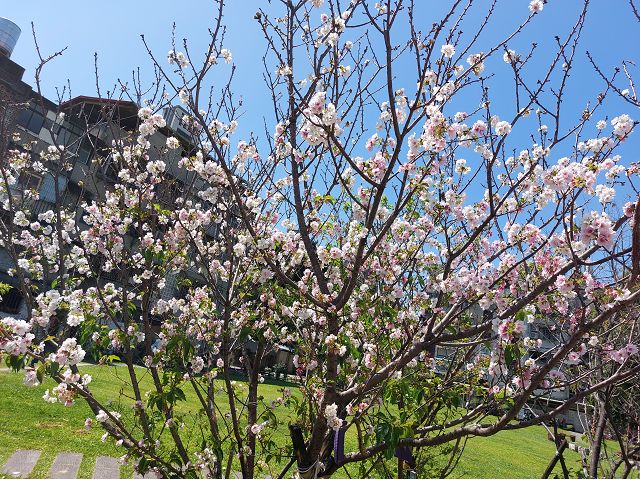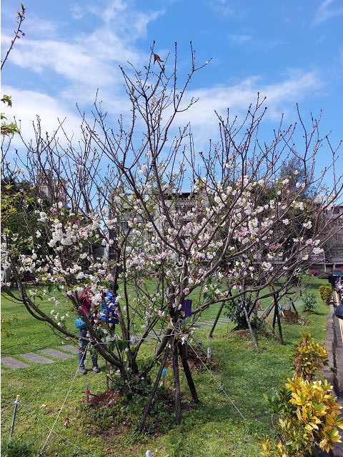 今年冬天幾番寒流來襲,溫度驟降,體感已至10℃間,感覺好冷,晨間散步特地走向美河市、快速路橋下,想看落羽松的顏色變化,即便出現如此低溫,可惜新店的落羽松仍然無法展露出最美的紅顏,讓關心的人滿意。倒是春節前後,社區周邊、瑠公圳溝旁緋紅山櫻花爭相吐豔報春,點綴得繽紛美麗,討人喜歡。小公園裡那株墨染櫻直到3月中旬才綻放白色傘狀花朵,起初誤以為是吉野櫻,但一位有心人掛上"墨染櫻"的簡單提示字牌,果然,不久,花開時的白色漸漸變成紛紅色,才注意到其枝條色較深、花期較晚,花朵變色,似也較具韌性耐看。(請參閱:「20240216春神降臨新店白馬寺.美和市櫻花杜鵑花齊放.新店褒忠義民廟滿堂花燈喜氣洋洋https://blog.udn.com/jkt19813/180427100」、「浮生雜記(一):新店崇光社區大學&仁愛里歲末聯合音樂會.新北投泡湯也能到雙月打牙祭.到天母SOGO百貨觀賞詹喻帆師生聯合畫展.新店生活周遭早午餐咖啡店一覽https://blog.udn.com/jkt19813/186421300」)