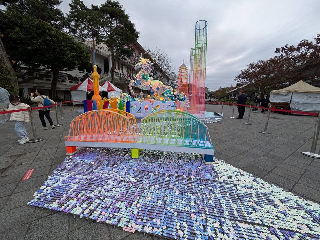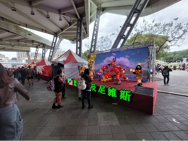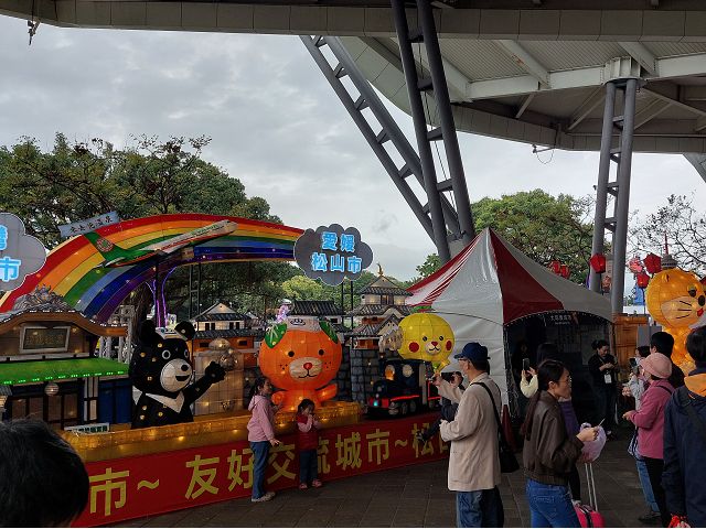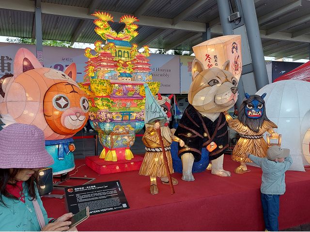 台北市政府觀光傳播局稱,2026台北燈節(2/25~3/15)首度推出"雙展區、雙IP"策展模式,橫跨西門展區與花博展區,花博展區且以"變形金剛TRANSFORMERS"為主題,打造前所未見的主題燈組與光影展演,充滿動感與力量感的沉浸式賞燈體驗云云。我們是2/28白天去圓山,觀賞花博展區的2026台北燈節展覽,沒了燈光秀烘托,連孤立帳篷外的大型柯博文主燈立體裝置燈組也失去吸引力,乏人問津,尤其以外國IP做主燈,跳脫元宵鬧花燈的傳統意義,恐怕也有許多人不以為然吧。但友好交流燈區裡,各國和地區參展的花燈可是吸引不少人潮,日本來了好幾個縣市的花燈,卯足了力,好像旅展呢,畢竟每年台人去日本旅遊的多如過江之鯽,他們是來招攬財神爺造訪啊。其他參與的包括首度參展的美國在台協會(AIT)、加勒比海的聖克里斯多福及尼維斯、關島、韓國大邱市、上海市等13個國家城市以正統的花燈組合展示,各具地方特色,琳瑯滿目,圍滿參觀人流,才是最大亮點。