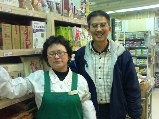 三天後、我回去 崇光百貨地下室超市買菜、我要求和這位送我糙米 的歐巴桑合照 ( 見圖 ) 、感謝!