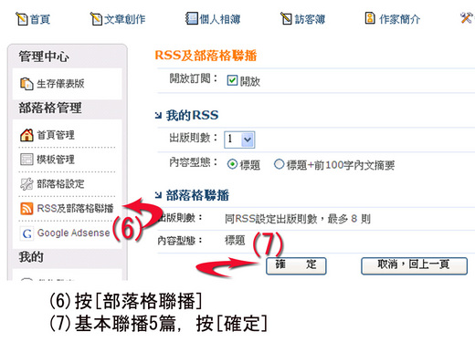 謝謝蔡大哥文章的指點﹐造福了許多人。昨天一遍一遍的﹐1﹑2﹑3﹑4﹑5﹑6﹑7﹑步驟﹐不知試了多少次﹐也不清楚是否已經成功設置部落格聯播﹐因為按照您的程序﹐完成後什麼也看不到﹐最後想大概我還是比較笨﹐放棄了。