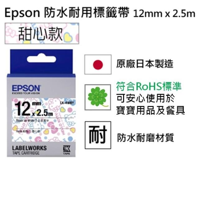 【EPSON】Kitty系列-甜心款 標籤機色帶白底黑字-12mm(LK-4WBY)