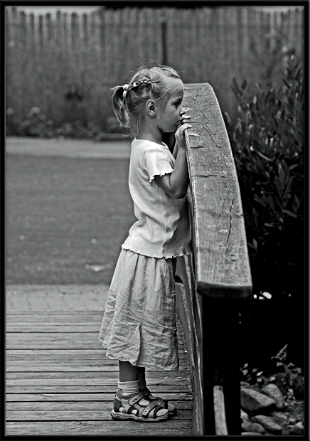 「我問你喔!…如果我們現在走開,姊姊就找不到我們。這樣好不好?」大男孩閒來捉狹的問著懵懂的小男孩。