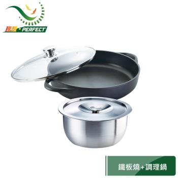 PERFECT理想日式黑金剛鐵板燒36cm+金緻316不鏽鋼調理鍋 22cm