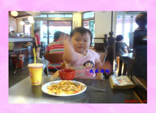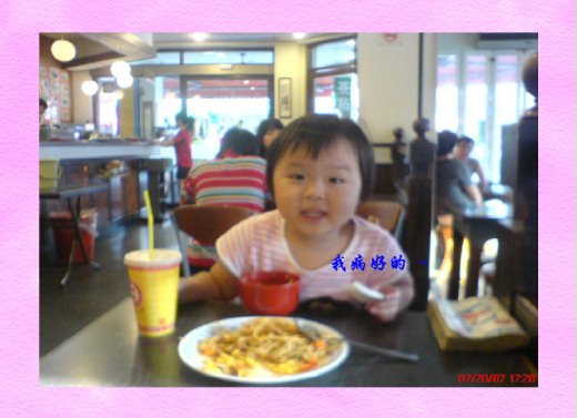 大頭蓁自從正常後 ( 生病 ),帶她去喝茶配麵,我還問她 : 妳真的好的 ? 大頭蓁秀出的表情還真是可愛 ~