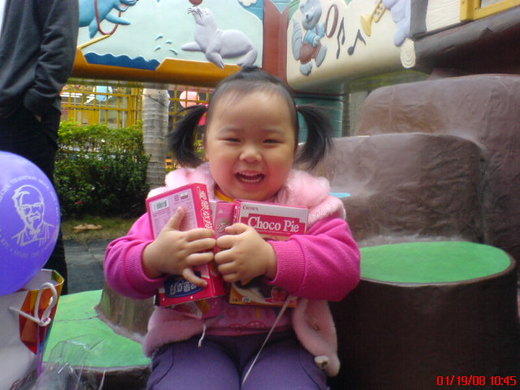 看見蕃茄爸的懇親會,那我也來張大頭在剛上小班時,學校也有舉辦的童遊會中的玉照好的,當時因為大頭的解說不清,以為要自己買零嘴帶去學校,所以大頭手上的儘是些大頭最愛的零食。