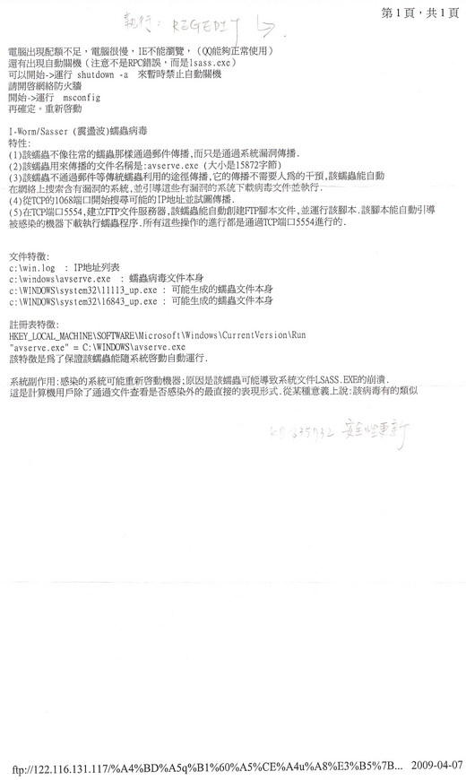 登錄檔不可亂刪動,要小心操作,沒有內文所示的登錄檔在其中,就表示未受感染,沒有蠕蟲病毒藏匿其中,就不需要更動其他登錄檔。以免造成電腦的運作發生問題。(可參照掃描檔內容)