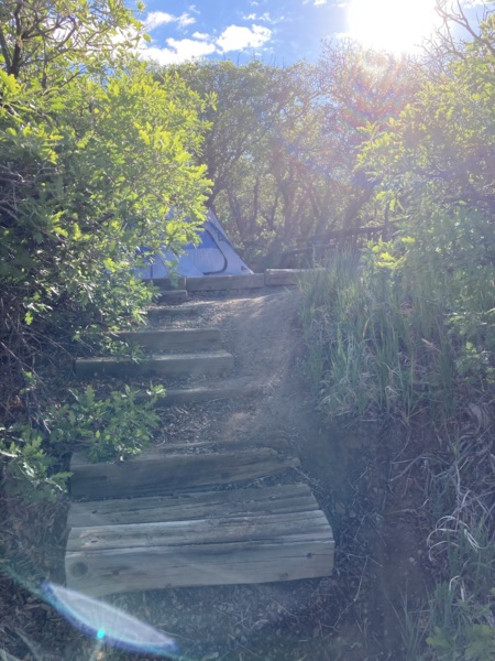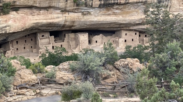 抵達梅薩维德國家公園(Mesa Verde National Park)已經傍晚,疫情期間,露營地很熱門,我們沒法訂到有電的營區,所以在這兒是沒電區。營區非常漂亮而涼快,四周綠樹環繞,幾個階梯上去才是住戶,與山面對面,堪稱高級住宅區!呵呵