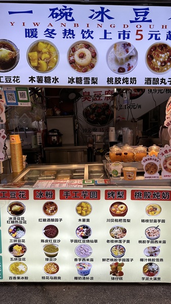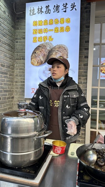 到處都有芋頭蛋糕,芋頭蛋塔,芋圓湯品,看起來都很吸引人。聽說桂林的芋頭特別好吃,口感細膩,煮熟後質地軟糯,入口即化,帶有淡淡的甜味和芋香。