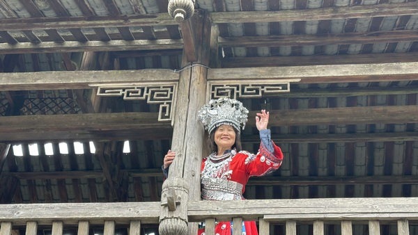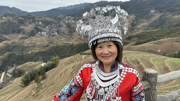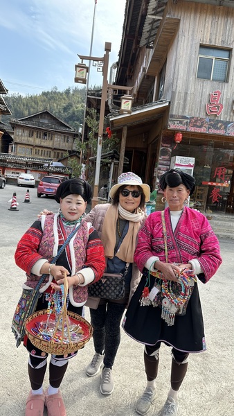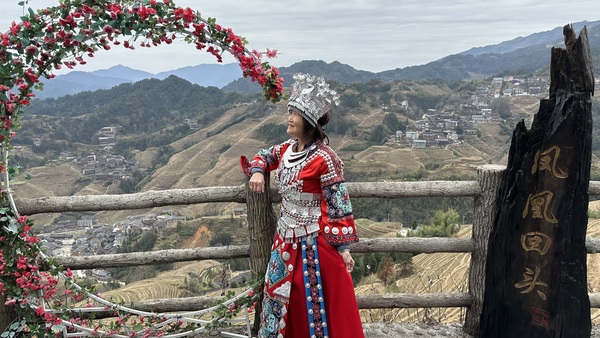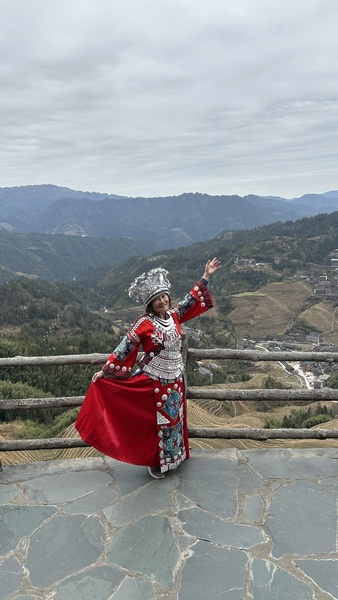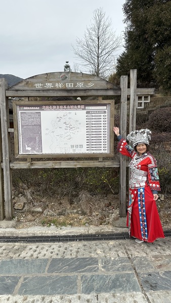 一個阿婆跟跟著我們推銷穿她店裡的傳統民俗服裝照相。才不到5塊美金一人。穿上公主服,感覺更融入龍脊地域了,呵呵!