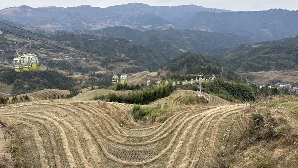 飯後搭纜車到龍脊梯田最高處。從上俯瞰梯田。