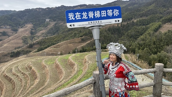 導遊說龍脊梯田春季梯田如鏡,倒映藍天白雲。非常漂亮。夏季稻田綠意盎然,層層疊疊,生機勃勃。秋季金黃稻浪,豐收美景,是最受歡迎的觀賞季節。冬季偶爾降雪,梯田銀裝素裹,別有一番韻味。