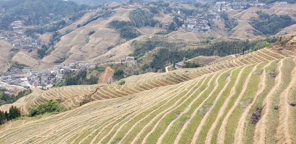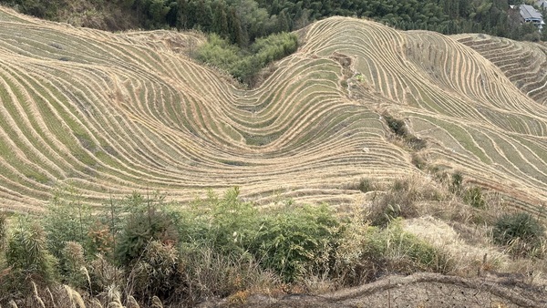 可惜我們來的時候剛好收割完,光禿禿一片,不過一層一層的梯田顯得更加明顯,格外壯觀,也另有一番味道。