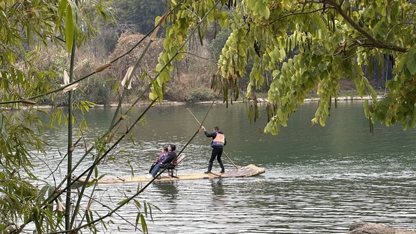 遇龍江沿岸寧靜秀美,翠竹環繞,喀斯特山峰倒映水中,配合古橋、田園、村落,每個片段都是天然的山水田園畫卷。