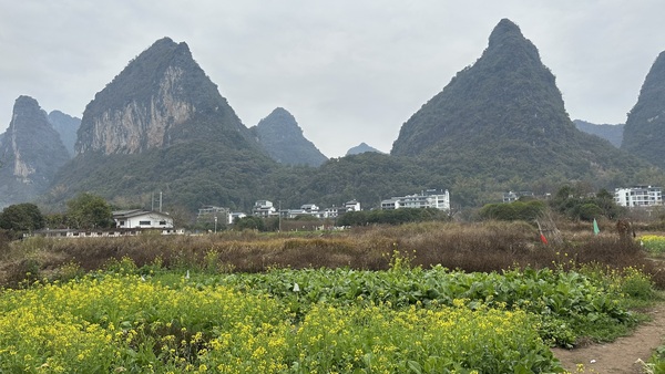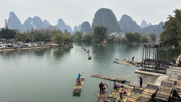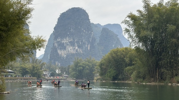 昨晚住在陽朔,今早8點前往遇龍江。沿途經過有十里畫廊美譽的風光,陽朔這一帶真的處處是國畫裡的山水。起初我還用手機頻頻留影,後來乾脆放棄,美的鏡頭太多,照不勝照,還是用心留住一幅幅的國畫吧!