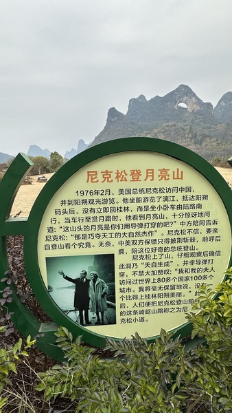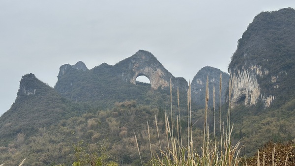 ‘月亮山’ 是十里畫廊最具代表性的景點,是一座以山頂圓形穿洞酷似一輪明月而聞名的奇特山峰。這座山是典型的喀斯特地貌,因自然風化形成 月洞 ,並隨著觀賞角度的不同,呈現出滿月,半月和眉月等不同形態。