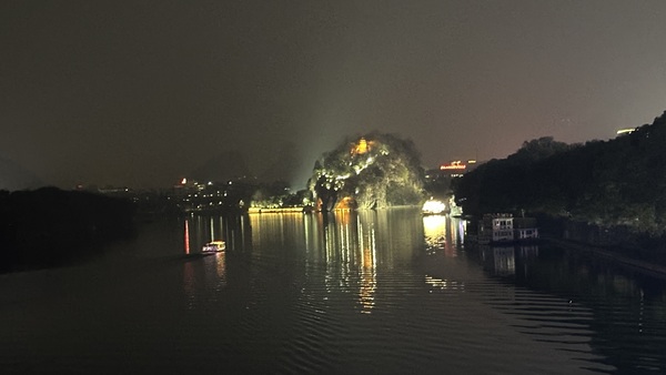 我們在桂林又待一晚,第二天一早搭高鐵到香港,在香港待一晚,再搭機回台灣。在桂林的最後一晚,我們打滴到市區作臨別巡禮,到東西巷吃螺獅粉,辣香豆腐,到逍遙樓看夜景。