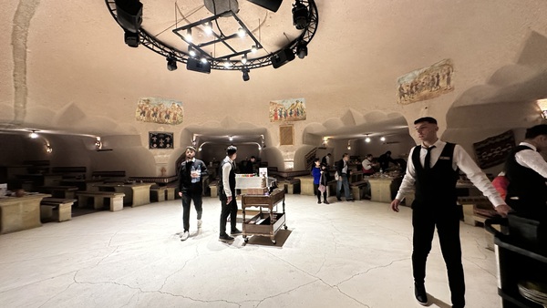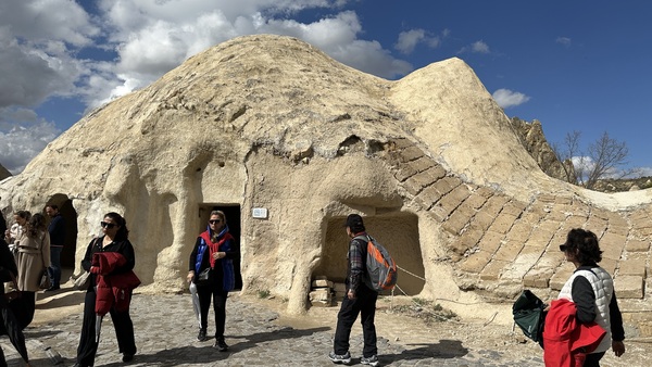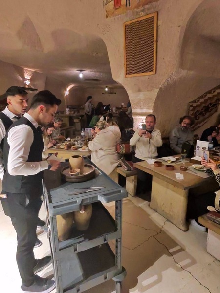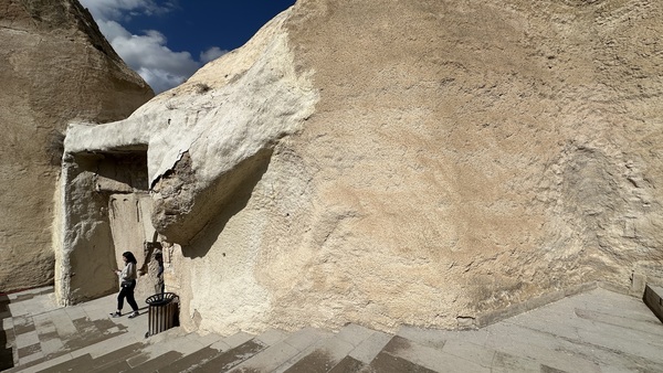 中午在一家岩洞餐館用餐。這家餐館開設在天然岩洞中,牆壁都是石頭鑿出來的,裡面空間不大但非常有氛圍。坐在石窟裡吃飯,彷彿回到了幾百年前的拜占庭時代。