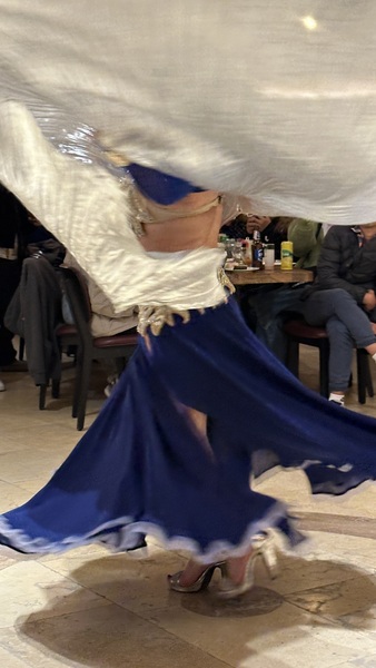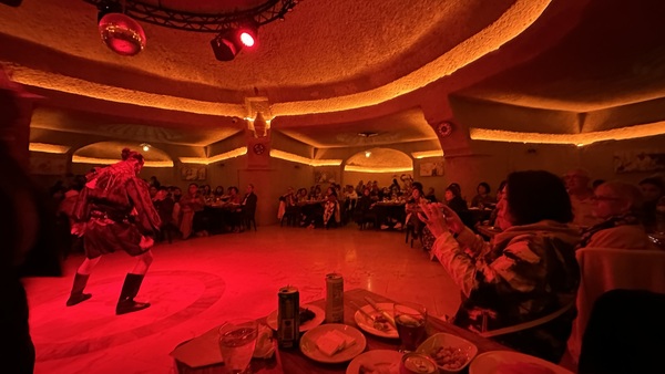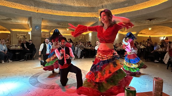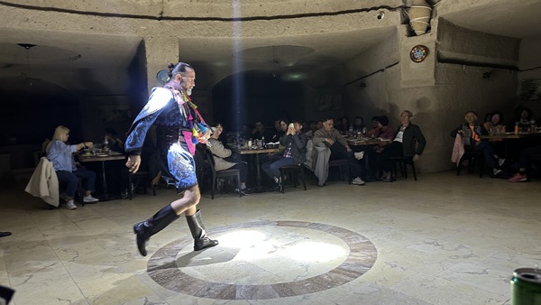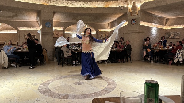 晚上在另一家岩洞餐廳吃晚餐和看土耳其舞表演。表演包括:旋轉舞,肚皮舞和民俗舞蹈等。旋轉舞(Whirling Dervishes)是蘇菲教派的宗教儀式舞蹈,有些神秘。肚皮舞(Belly Dance)華麗熱情,民俗舞蹈(Folk Dance)展示土耳其各地文化特色與服飾。再加上現場有土耳其傳統樂器伴奏。很有土耳其風情!