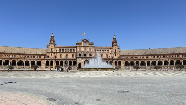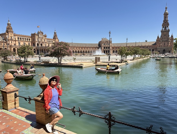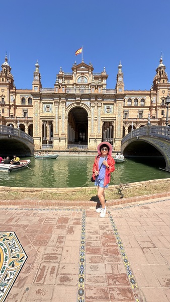 下午,我們來到壯觀的西班牙廣場(Plaza de España),這是塞維利亞的地標之一,也是西班牙摩爾復興建築的縮影。塞維利亞在1929年爲了主辦西美展覽,在瑪利亞路易莎公園的邊緣興建了目前的西班牙廣場,舉行西班牙的工業和技術展覽。