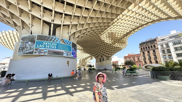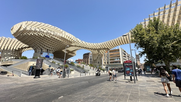 下午,我們轉往市中心的 都市陽傘(Metropol Parasol)。這座建築被當地人叫做「Las Setas」,意即「蘑菇」。果然,遠遠望去,就像一片巨大的菌傘,奇特卻又充滿現代感。