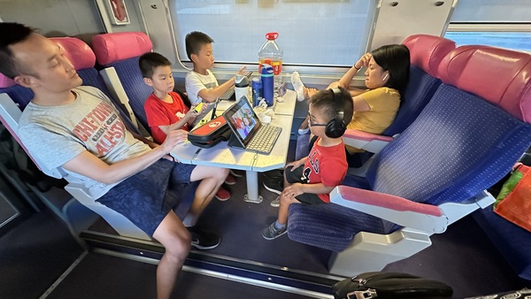 夜幕漸漸降臨,我們帶著一整天的笑聲與感動,來到 Santa Justa 高鐵車站。流線型的列車準時駛入月台。