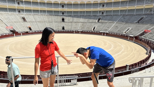 我們跟小孩說:”很多國家都禁止鬥牛,我們也不贊成,因爲這對動物很殘忍,很不公平,但因爲這是西班牙的文化,我們既然來西班牙。就想瞭解和體會他們的文化,所以決定帶你們來看。。。。。“