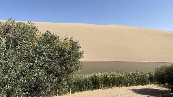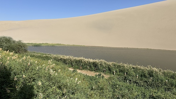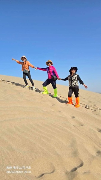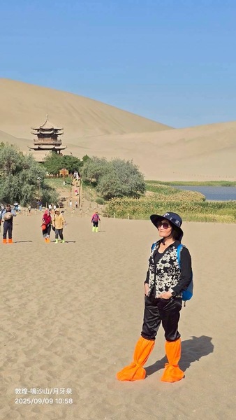 昨晚夜宿敦煌,一早來到離一個多小時車程的敦煌鳴沙山月牙泉。