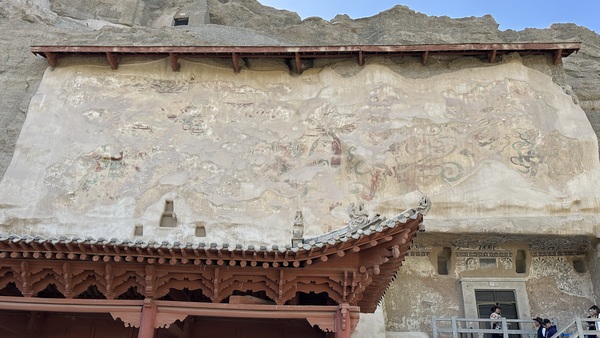 這裡的參觀方式十分特別,每一個洞窟都有道木門,都需由導覽員專門開門,參觀結束後立即鎖上,雖然這樣是為了保護千年壁畫與雕塑的安全,避免被偷竊或破壞,但好像失去‘古蹟’ 的感覺!不像在探索古蹟,比較像是進去房間看壁畫!
