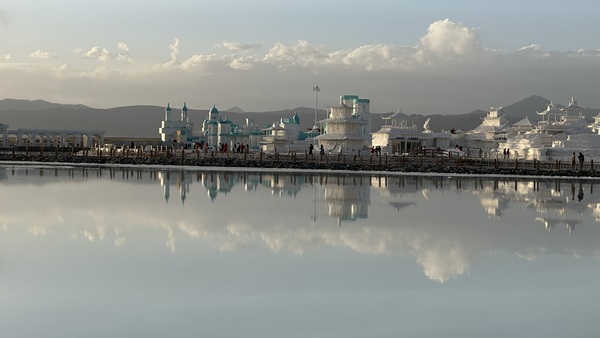 第一站便是鹽堆積而成的「鹽雕園」。鹽晶堆砌的古堡、動物和各式造型,栩栩如生,充滿創意與童趣,白色鹽晶在陽光下閃閃發亮。