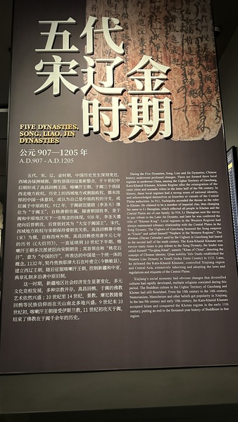 歷史展區從秦漢、魏晉、隋唐、宋遼金,到元明清,每個朝代的展板都說明新疆在中國歷史舞台上的角色,讓人感受到這片土地從古至今的重要地位。