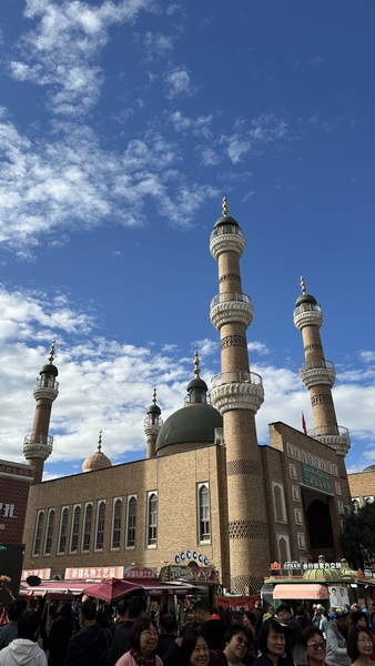 安置好行李,我們打滴到市區大巴紮。距離酒店不太遠,才12 人民幣。這裡是全市最熱鬧的景點之一,也是新疆少數民族文化,美食與工藝品的集中地。