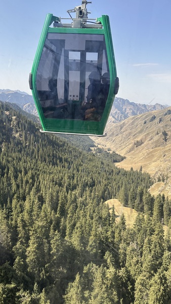 隨著纜車緩緩升空,腳下的森林像一塊深綠色的地毯展開,遠處的山谷隨高度拉升逐漸顯露出壯麗層次。回首俯瞰,天池的湖水宛如一顆碧玉,鑲嵌在群峰之間,令人屏息。真的是人在畫中。