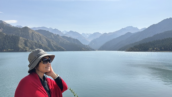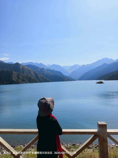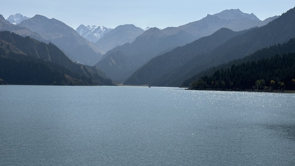 天池位於天山博格達峰北坡(海拔 5445 米),湖面海拔約 1900 米。湖水來自冰川雪水,清澈碧藍,四周雪峰聳立、冷杉林環繞。古人稱這裡為「瑤池」,相傳是西王母沐浴的仙境。