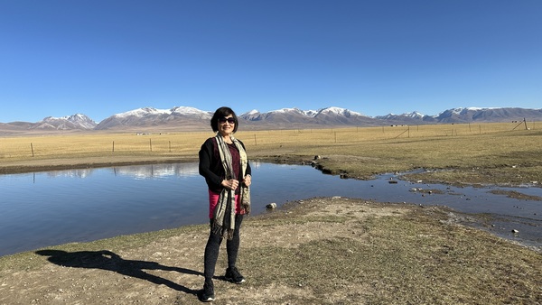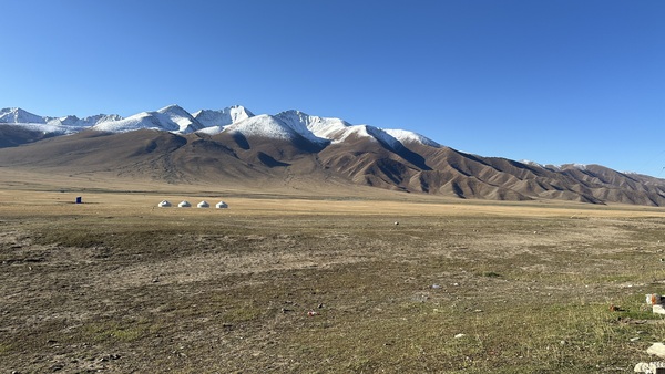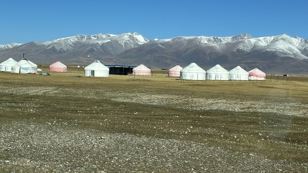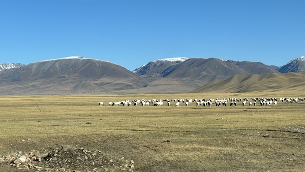 不久來到巴音布魯克草原。這裡地勢寬廣,開都河如銀帶蜿蜒,九曲十八彎在夕陽下泛著金光。湖畔可見成群白鳥歇息,遠處雪峰倒映在水面上。