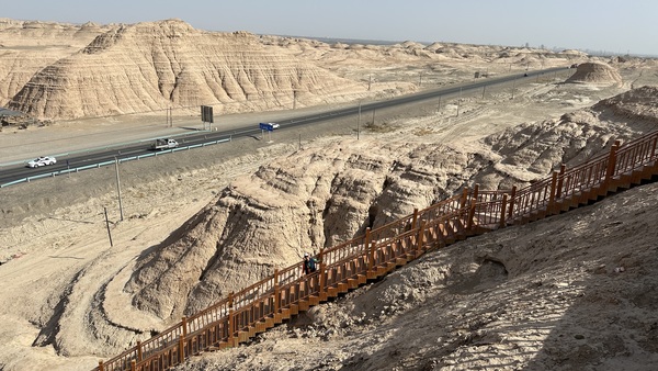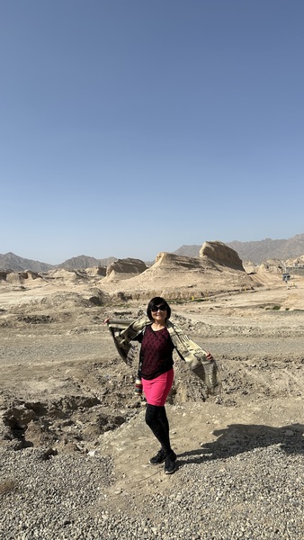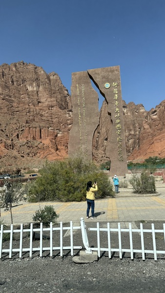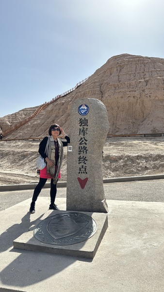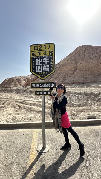 抵達終點庫車時,眼前矗立著「獨庫公路終點」的石碑與G217標誌牌,象徵這條傳奇公路的落幕。站在碑旁留影,心中有種莫名的成就感。