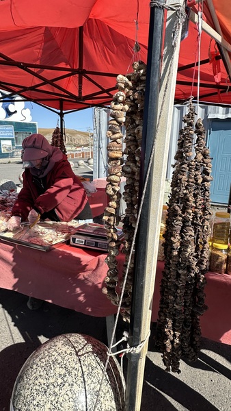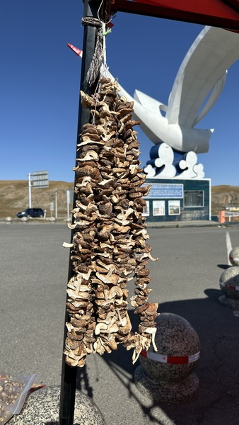 我們在巴音布魯克稍作停留。有賣乾蘑菇,牛肉乾,酸奶的攤位。來新疆幾天,我們幾乎天天喝酸奶,大部分是在路上小攤買的,有時,回到酒店,還會去附近的商店買。真是太好喝了!
