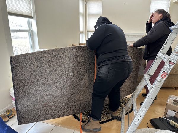 那張花崗岩餐桌看起來確實重,但搬的人非專業也有關,
