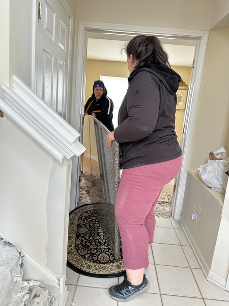 他們一邊討論,一邊試著移動桌面。是抬起來一點一點挪。一個角落,一個角落地調整。從早上到下午。汗水、喘氣聲、彼此的指揮聲,在客廳裡來回。費了好幾個小時,中間還不得不吃午餐補充體力。