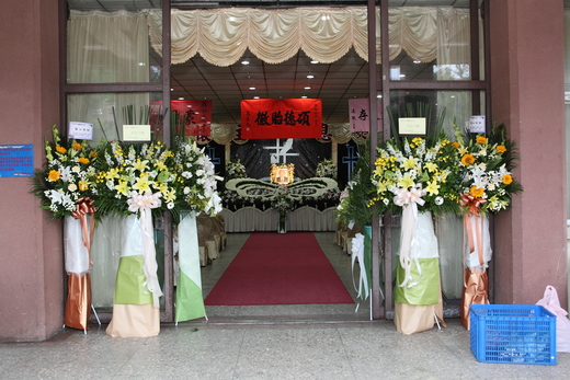 照片顯示的, 應是令尊的靈堂吧.